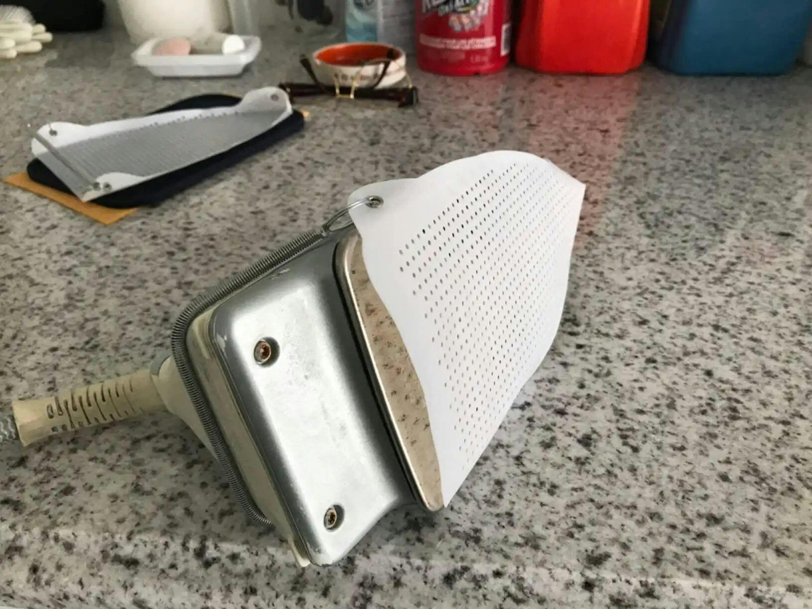 You won't burn your clothes anymore. Keep it on my iron at all times, and the iron, placed at a high temperature, can iron any material without worrying about damaging the fabric.